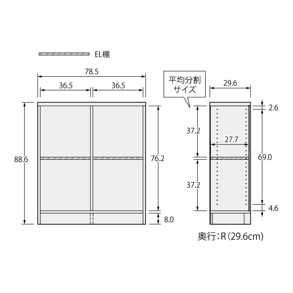 サイズ(外寸) W78.5×D29.6×H88.6cm