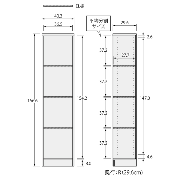 サイズ(外寸) W40.3×D29.6×H166.6cm