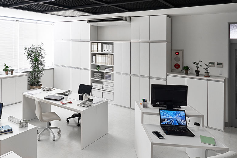 ●AR/NC オーダーメイドのオフィス使用イメージ 【注意】収納、オフィスイメージは奥行31cm(オープン&ライン扉タイプ)です。