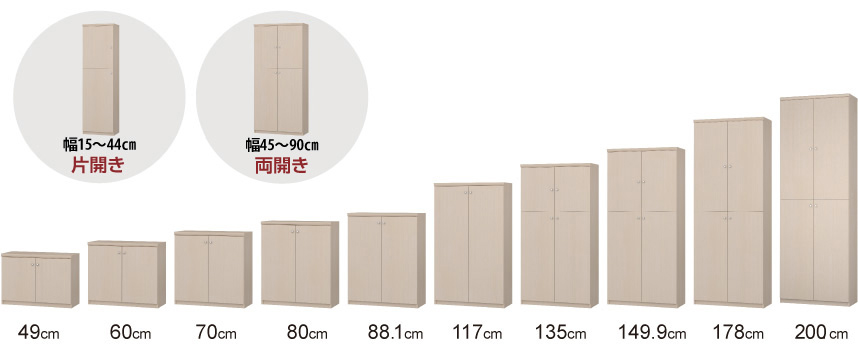 高さは49cm~200cmまで10タイプご用意。高さカット加工で1cm単位でご要望の高さに対応します。