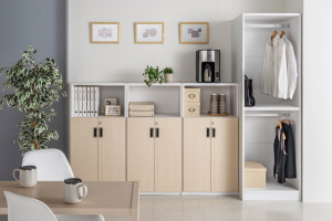 モダンなデザインと多彩なカラーバリエーションで、どんな空間にもマッチ。機能性と美しさを兼ね備えた収納庫です。