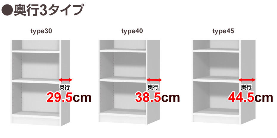 ●奥行は用途に合わせて3タイプから選べます。