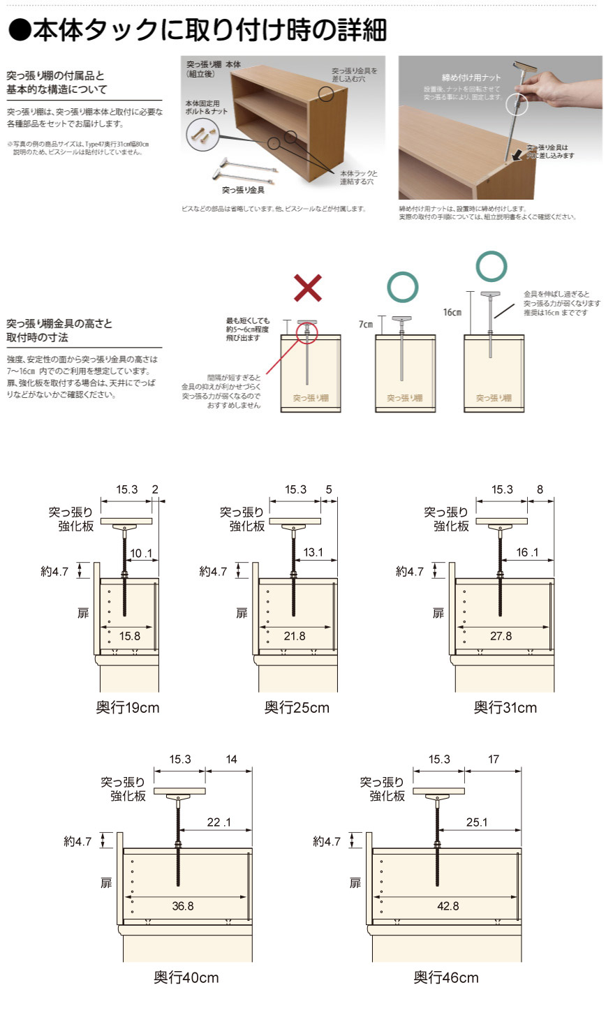 奥行は収納物に合わせて5タイプからお選びいただけます。