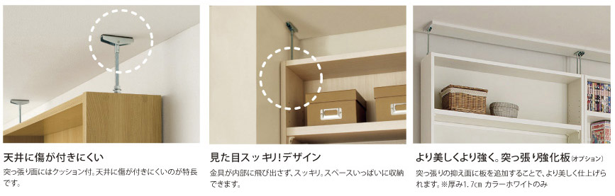 • 天井突っ張り仕様で壁面を丸ごと収納空間に