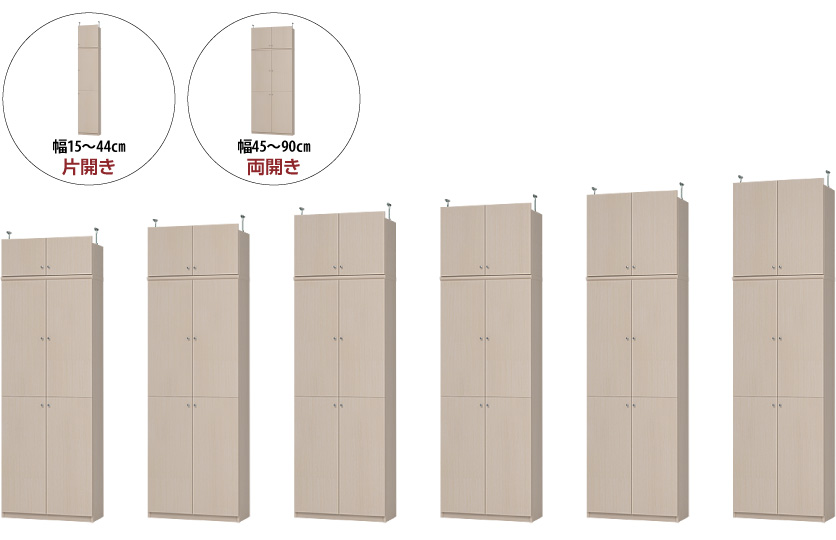 全面扉付天井突っ張りオーダーラックのサイズ選択・ご注文はコチラ