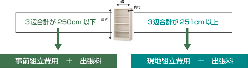 3辺が251cm以上の商品は、組立業者が訪問し組立、設置します。